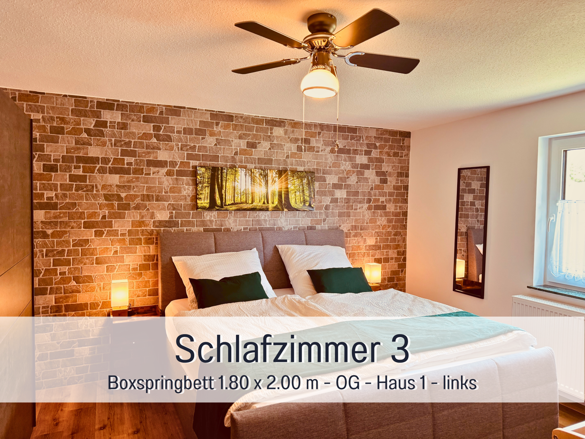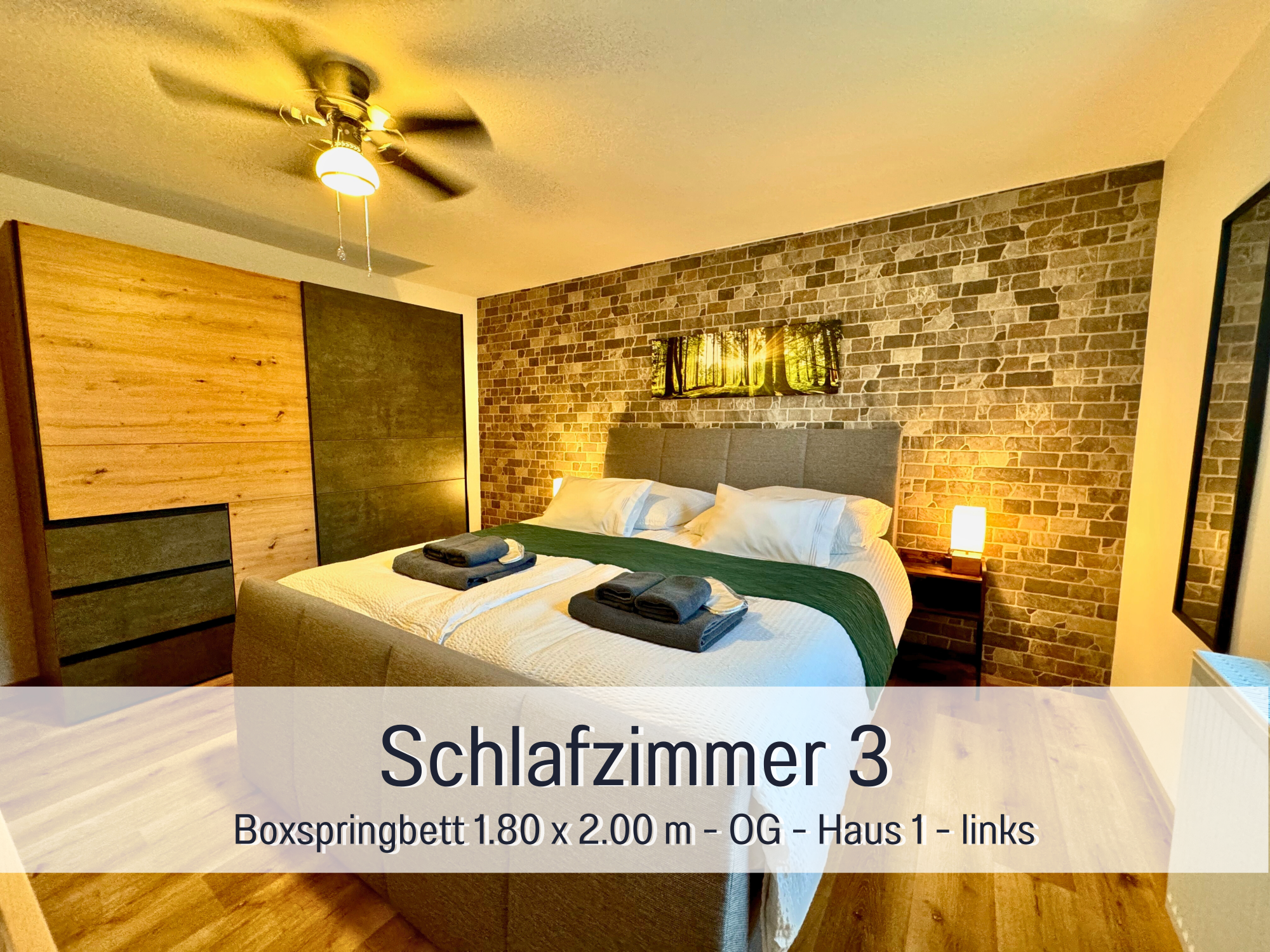 Mit 3 Schlafzimmern ist genügend Platz für die ganze Familie oder eine Gruppe von Freunden. Die beiden Kingsize-Boxspringbetten (2,00 m x 1,80 m) sowie zwei Einzel-Boxspringbetten (2,00 m x 0,90 m) garantieren erholsame Nächte.