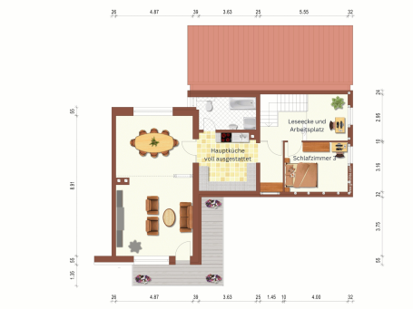 Für Ihre Arbeit und Entspannung stehen ein Arbeitsplatz sowie eine gemütliche Leseecke mit bequemen Lesesesseln zur Verfügung. Der Garten lädt zum Verweilen ein, während die Spielscheune für die kleinen Gäste ein Paradies zum Toben ist.