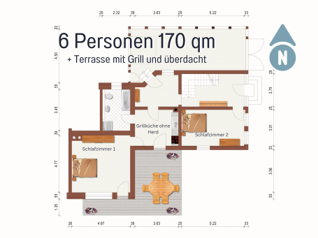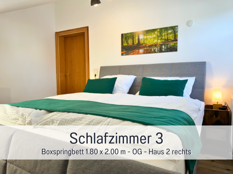 Auf 170 qm bietet das Haus reichlich Platz für bis zu 9 Personen. Die 3 Schlafzimmer sind alle mit komfortablen Kingsize-Boxspringbetten (2,00 m x 1,80 m) ausgestattet, um Ihnen erholsame Nächte zu garantieren. Ab 7 Personen werden 2 Zustellbetten (max. 95 KG) hinzugestellt.