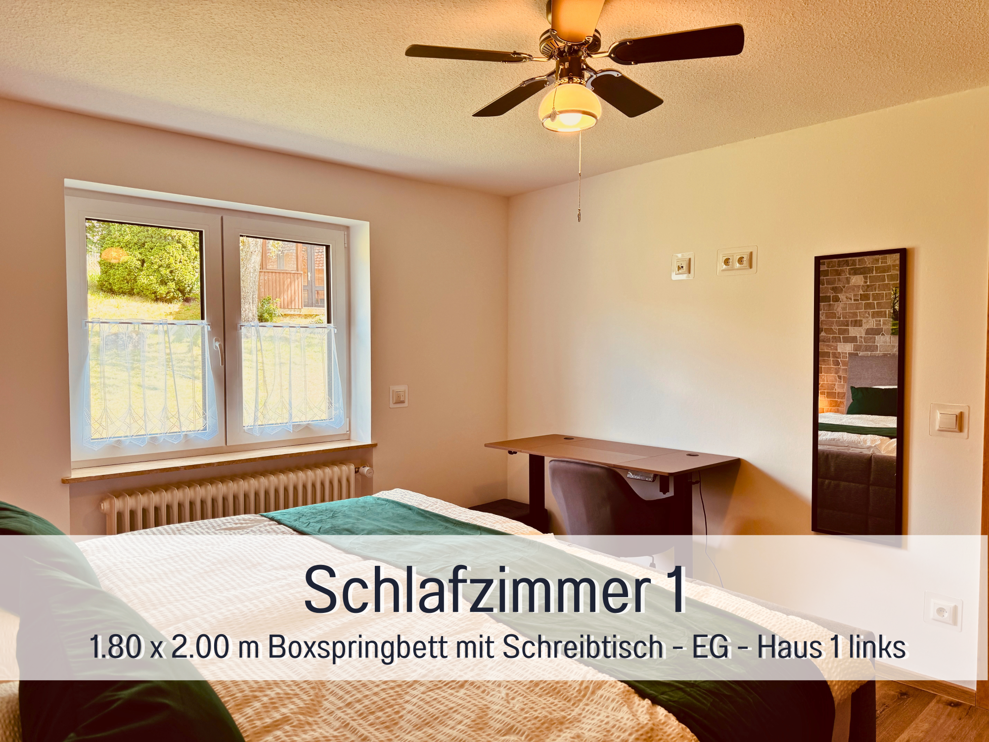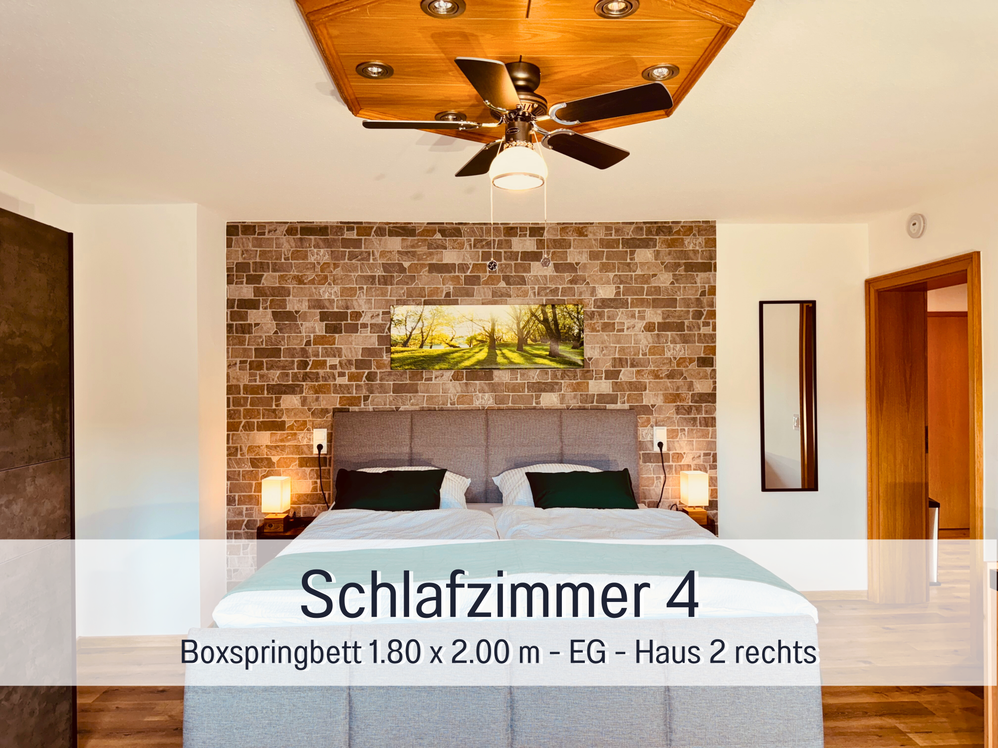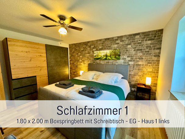 Platz für bis zu 9 Personen. Die 3 Schlafzimmer sind alle mit komfortablen Kingsize-Boxspringbetten (1.80 m x 2.00 m) ausgestattet, einem Einzelbett (0.90 m x 2.0 m). Bei Bedarf können noch 2 Zustellbetten (max. 95 KG) hinzugefügt werden.