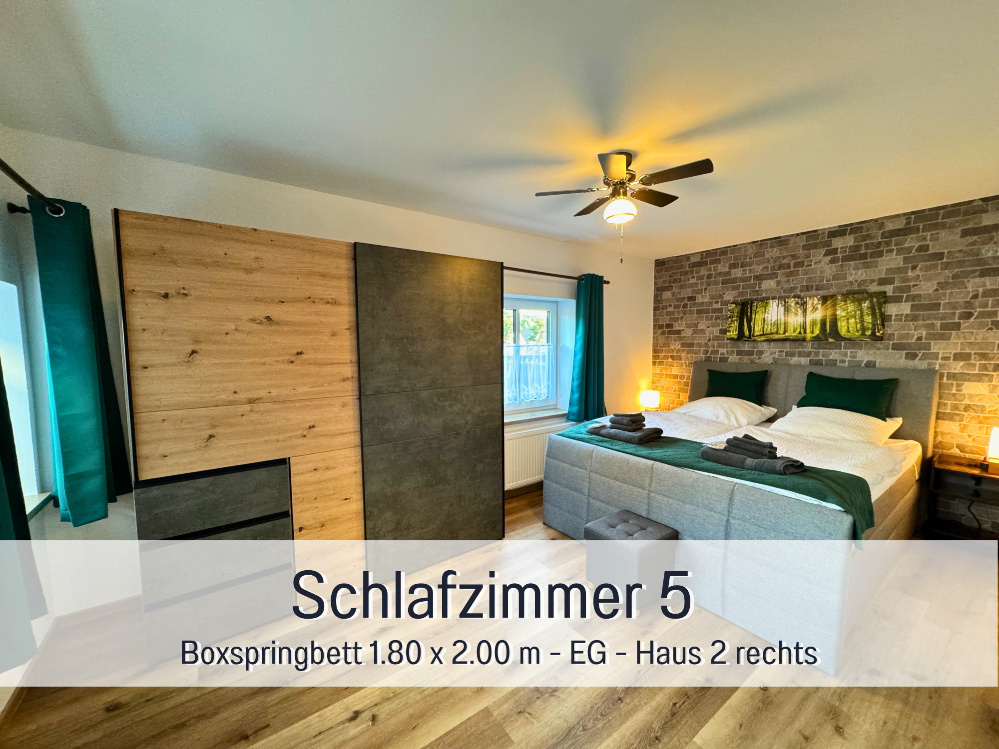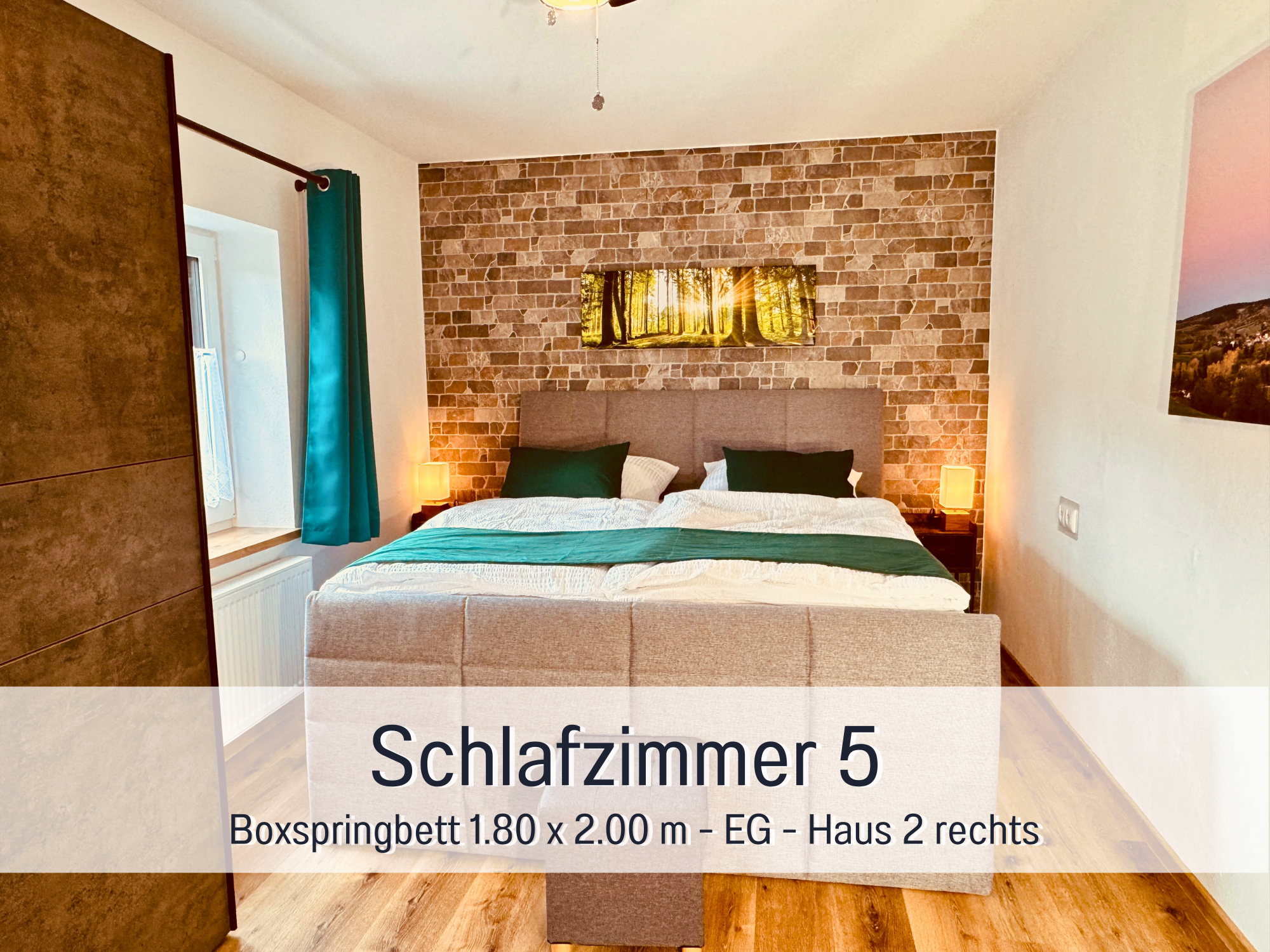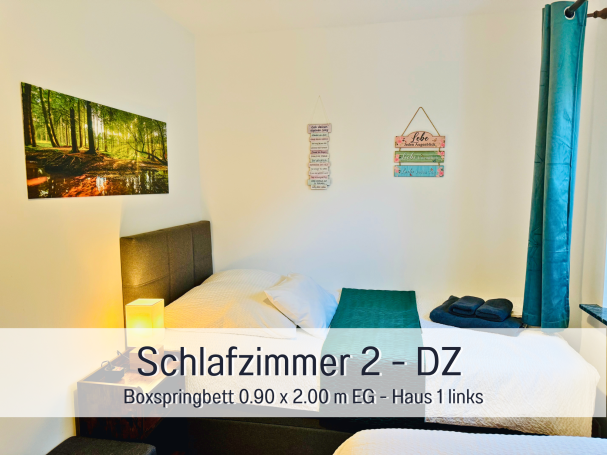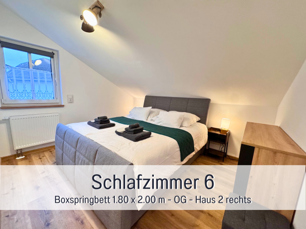Die beiden Boxspringbetten (1.80 m x 2.00 m) sowie zwei Einzel-Boxspringbetten (0.90 m x 2.0 m) garantieren erholsame Nächte. Bei Bedarf können noch 2 Zustellbetten (max. 95 KG) hinzugefügt werden.